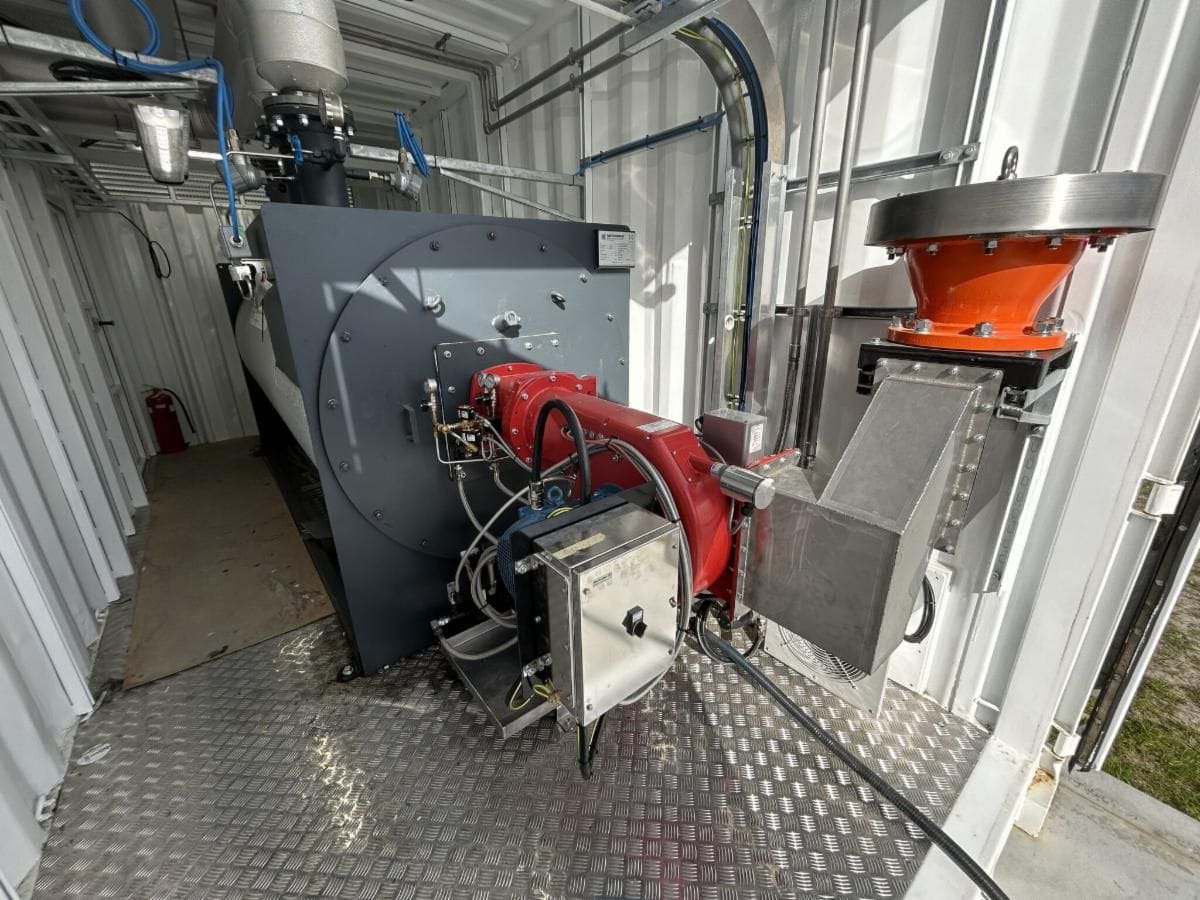 On-Site Installation: We installed the Thermal Oil Heater and the Nu-Way burner directly into a modified shipping container. This setup presented its own set of challenges, as we had to adapt the container for ventilation, structural integrity, and accessibility.